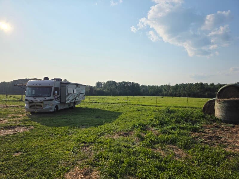 Discover peaceful RV Camping on a serene regenerative farm offering grass-fed beef and lamb, pasture-raised pork, farm-fresh free-range eggs, handcrafted kombucha, sauerkraut, and milk soaps. Park in a secluded hayfield beside sheep and horses, enjoy friendly hosts and private surroundings, and order farm-to-table products in advance for pickup upon arrival. Perfect for a quiet, authentic farm experience.