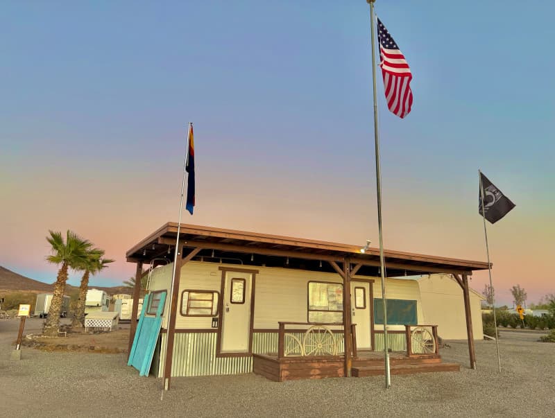 Discover RV Camping in a lush desert haven just minutes from a major river and popular desert towns. This seasonal park offers 30- and 50-amp pull-through and back-in sites with full hookups, plus a complimentary boondocking night for Harvest Hosts. Enjoy standout landscaping with cacti and palms, a clubhouse with big-screen TV, pool table, shuffleboard, weekly firepit gatherings, laundry, showers, filtered water station and a fenced dog play area. Adventure awaits with direct access to 750 miles of off-road trails on the Arizona Peace Trail and nearby attractions year-round.