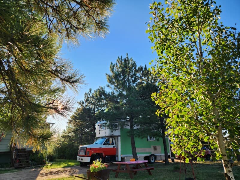 Experience RV Camping at a peaceful small farm tucked away among mature trees and gardens. Level pull-through parking in a circular driveway offers water and 120V power. Spend your stay exploring backyard flower beds, meeting friendly goats and chickens, and soaking in distant mountain views. Start each morning with a homemade breakfast--fresh muffins (including gluten-free), ranch eggs, smoothies--and pick up seasonal veggies, jam and more for your journey.