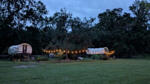 Experience RV camping at this nonprofit animal sanctuary set on 20 acres of peaceful countryside. Boondock beside the entrance fence, watch cows, pigs and peacocks roam, or choose the spacious yard area for a private, quiet stay. Enjoy seasonal cow cuddle encounters, hands-on animal feedings, a kids’ playground and a gift shop. Full hookups and black-water dump available. All fees support the care of over 100 rescued animals.