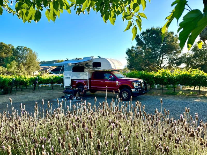 Experience RV camping among award-winning Petite Sirah, Zinfandel and Malbec vines at this charming vineyard in Ramona Valley AVA. Level gravel and packed-dirt sites accommodate Class B to Class A rigs, with easy winery access and dog-friendly hospitality. Enjoy medal-winning red wines in a living-room style tasting room or picnic between the rows, explore a self-guided vineyard tour and vintage car museum, then gather around the fire pit for sunset views and Sangria.