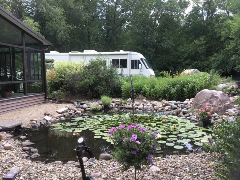 Nestled on a tranquil property just minutes from local shopping and dining, this private garden retreat offers a peaceful haven for RV Camping. Guests enjoy level sites with water and electric hookups, multiple parking options, and a serene pond setting. Explore nearby museums and trails, stock up at grocery and hardware stores a short drive away, then unwind among blooming gardens and friendly hosts for a restful stay.