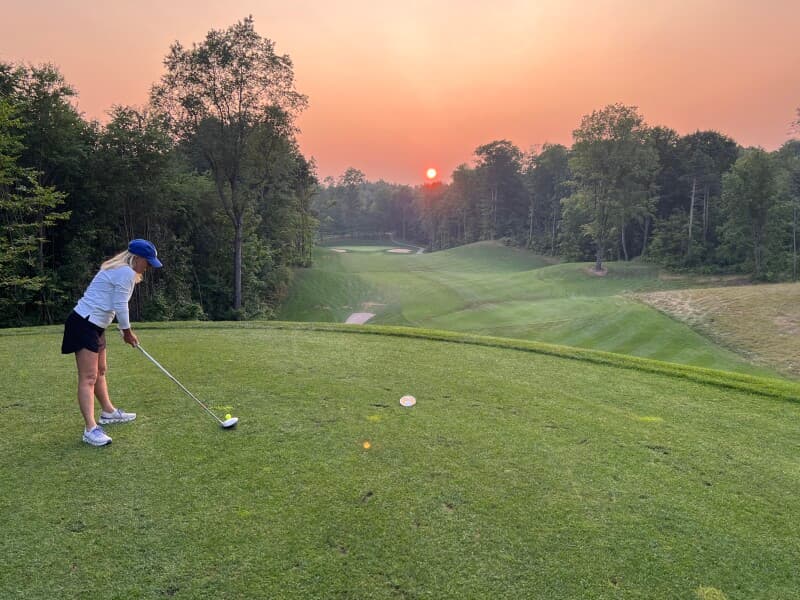 Tee off on the region’s original 18-hole course and enjoy RV Camping in a serene, wooded setting overlooking the 10th tee. Park on a level grassy spot steps from the fairway, then test your short game on impeccably maintained greens. Take advantage of Friday $1–per–hole play or a Sunday special, rent a cart, and grab a snack or refreshment at the clubhouse. By night, unwind under star-filled skies for a peaceful getaway.