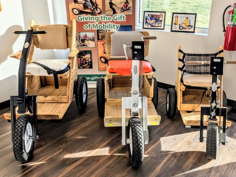 Kick off your RV Camping adventure at a quiet nonprofit workshop where volunteers build hand-cranked mobility carts for those in rough-terrain regions worldwide. Enjoy level parking with 20 A electric, easy water fill, and safe access off the highway. Join a guided tour, test your building skills, or lend a hand assembling carts. This meaningful stop blends RV Camping with hands-on volunteering and the chance to support a life-changing mission.