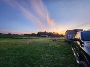 Breathe in wide-open skies at this quiet country homestead, where RV Camping comes with open fields, a classic red barn view, and friendly chickens and ducks to feed. Stroll the property, relax under a shady tree, and enjoy glowing sunsets and crisp, coffee-worthy mornings. Designated higher-ground campsites help keep rigs comfortable after rain. Convenient to a nearby winery, a popular marketplace & flea market, a football hall of fame, Amish Country, and big-city day trips.
