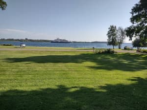 Perched on the banks of a mighty river, this peaceful spot offers RV camping with breathtaking waterfront views and memorable sunsets. Park on a spacious, paved drive or right at the river’s edge and enjoy the company of friendly canine hosts. Explore nearby cycling and walking trails, tee off at a local golf course, tour a living history village, or visit a dinosaur park. A serene, nature-filled stay awaits just off a quiet dead-end road.