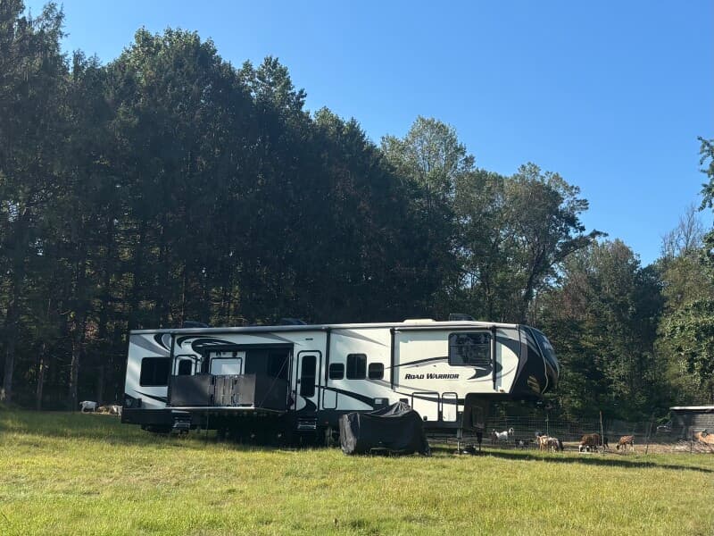 Nestled on 16 acres of woods and open fields, this charming farm offers RV camping steps from a babbling stream on adjacent township land. Enjoy peaceful nights, wake to rooster crowing and explore up-close encounters with goats (even triplets!), birds, snakes and more. Dog-friendly and family-approved, hosts provide guided animal tours and warm hospitality for a memorable rural escape and outdoor adventure.