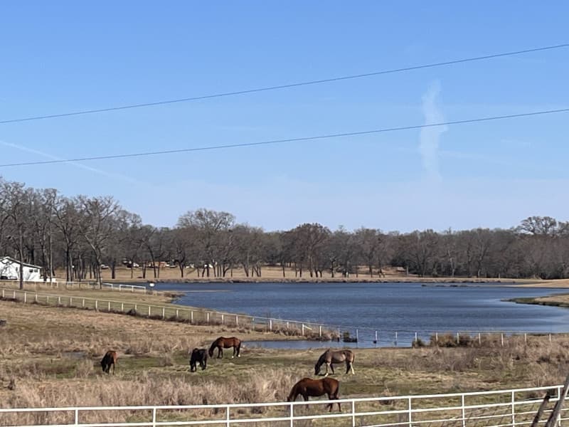 Nestled amidst rolling pastures and a private freshwater lake, this serene east Texas equestrian ranch offers RV camping with full hookups and friendly hospitality. Cast a line on the stocked pond, feed grazing horses, or spot herons and turtles along the shore. With easy access to local laundry and nearby scenic drives around Lake Fork, it’s the perfect overnight stop for relaxation, fishing, and reconnecting with nature.