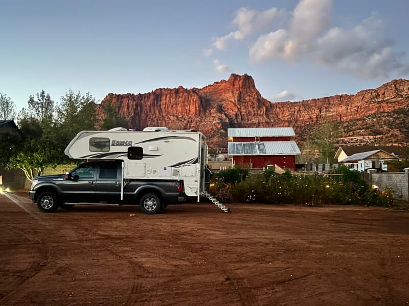 Nestled beneath towering cliffs, this boutique 5-star lodge offers RV Camping with full hookups and breathtaking mountain views. Friendly hosts welcome you with beer on tap, chilled mugs, shared appetizers, wine and cold ones in a cozy lobby bar. Families and dogs enjoy lawn games like cornhole, basketball and Jenga amid friendly gatherings at sunset. Water, 50 A power and dump services available for a small fee, plus a hearty breakfast, make this scenic retreat a memorable stopover.