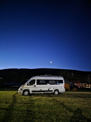 Experience RV Camping at a charming small-town farmers market surrounded by scenic mountain views. Guests park on a level, pull-through pad behind the market, steps from a visitor center and local shops. Stock up on farm-fresh produce, meats, eggs, roasted coffee, cider, wine, craft beer, dairy, spices, snacks and gluten-free or vegan options. Open daily with easy check-in by 5pm and quiet nights for a restful stay.