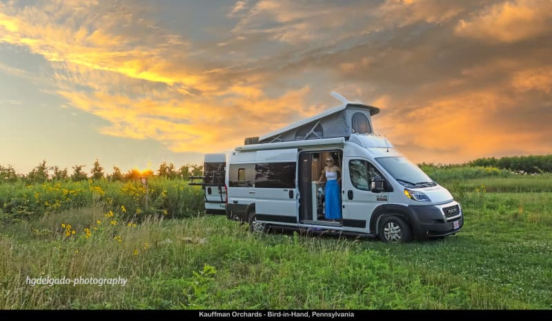 Nestled among rolling Amish Country orchards, this family-run farm offers RV Camping on level grassy sites overlooking apple and peach trees. Mornings begin with gathering fresh eggs and feeding goats, pigs and chickens, followed by browsing the farm market for cider, baked goods and homemade preserves. Seasonal U-pick fruit, artisanal pottery and panoramic countryside views add charm, while the hosts’ genuine hospitality ensures a memorable, peaceful getaway.