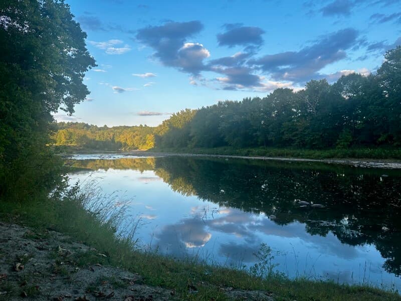 Experience RV camping at a serene alpaca farm set on 40 private acres along a winding river. Enjoy flat, firm gravel or grass sites with optional electric hookups and handicap access. Spend your days strolling lush fields, meeting friendly alpacas, or relaxing on the sandy riverbank for swimming and fishing. Browse a charming gift shop stocked with handmade alpaca wool clothing, soaps, and jewelry. Seasonal events include outdoor weddings and live music gatherings for added country charm.