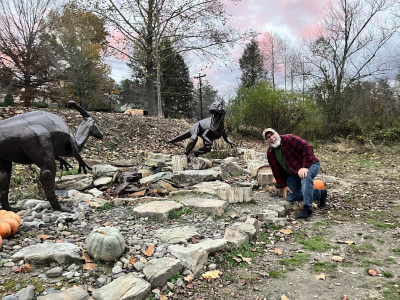 Discover RV camping fun at this family-friendly gem mine farm where you can sift real gemstones and keep your treasures. Explore a peacock and pheasant habitat, visit playful goats, and wander a Jurassic Pond dotted with metal dinosaurs. Relax at picnic tables by a babbling stream, sample local brews in the beer garden or grab snacks and ice cream from the onsite shop and food truck. Pet-friendly with nearby trails for walking dogs.