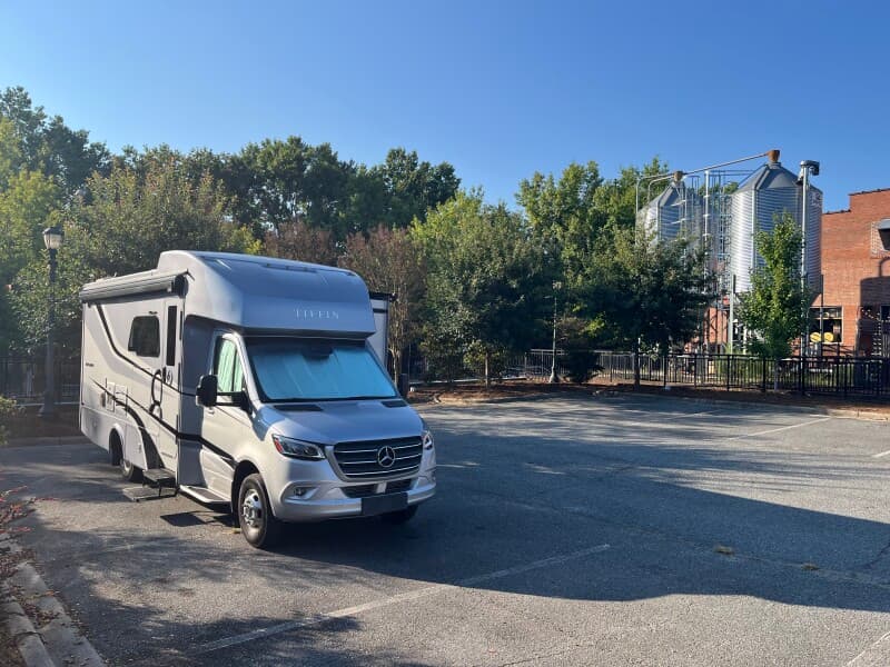 Nestled in a historic downtown, this small community-driven craft brewery invites RV camping enthusiasts to enjoy 24 rotating draft taps of handcrafted beer and outdoor live music. Dog-friendly grounds feature paved, secluded parking with 15amp and 220V power hookups. Savor ciders, Prosecco and local food trucks steps from your rig, or explore nearby shops and eateries on foot. Welcoming hosts off I-85 ensure a seamless overnight stay.