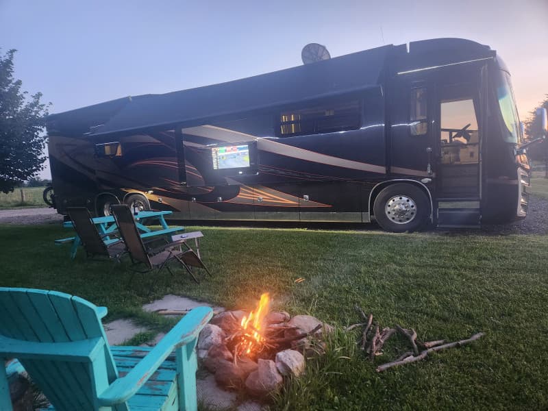 Roll into rolling pastures and free-range chickens at this 75-acre ecological farm retreat perfect for RV camping. Park on spacious, level sites outfitted with picnic tables, Adirondack chairs and fire pits, then explore 25 wooded acres to spot heritage pigs or join a guided farm tour. Stock the on-farm store with 100% grass-fed beef, heritage pork, eggs and local groceries. Friendly dogs, firewood for sale and serene sunset views complete the experience.