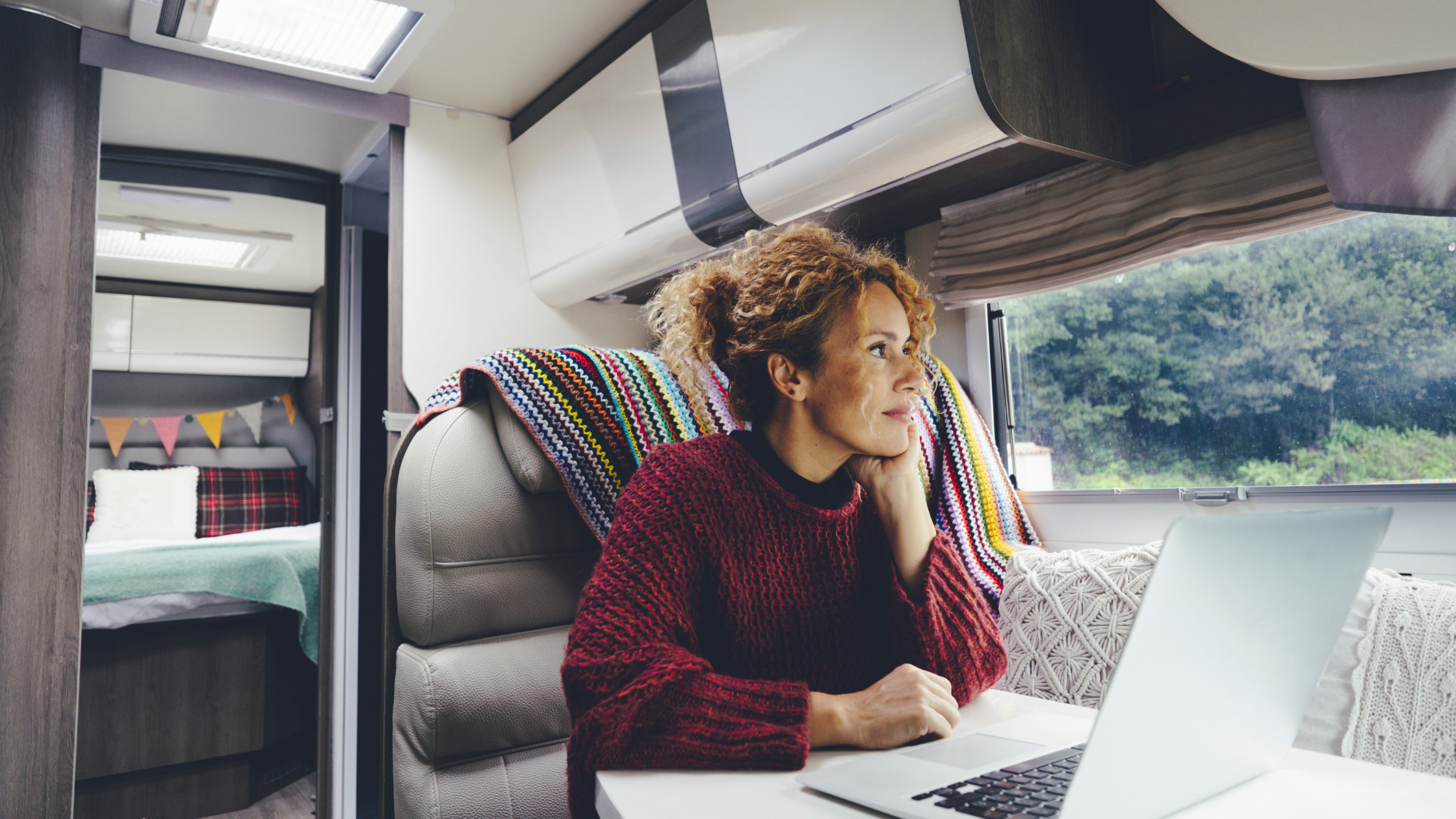 RVers creatively convert dinettes, couches, and even beds into workspaces, blending work with the freedom of travel in their mobile offices.