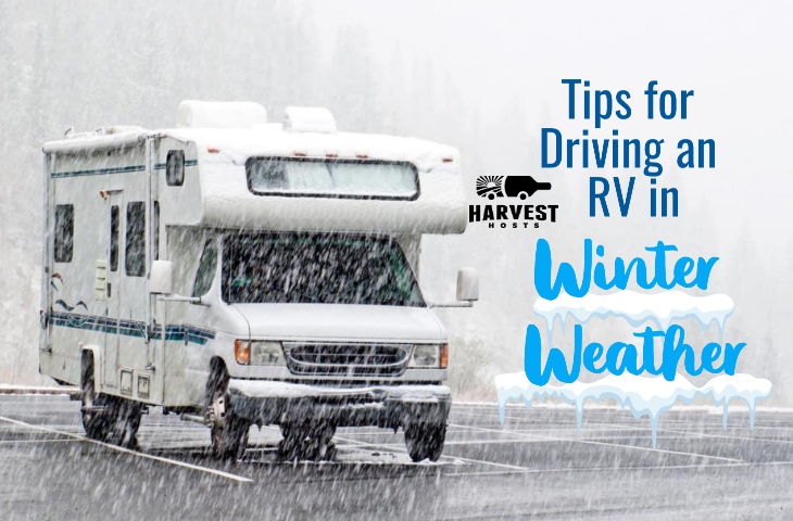 No matter how much preparation goes into planning a trip, sometimes things don’t go according to plan. This is oftentimes the case with inclement weather. The forecast might say rain, but Mother Nature could have other plans in the forms of ice, snow, sleet, or hail. Driving in winter weather can be challenging and dangerous, especially so in an RV. While Harvest Hosts would never recommend driving in inclement weather, but there may occasionally be times where RVers don’t have another choice. In that case, being informed on how to drive in winter weather can be life saving. Below, we’ve outlined some tips for driving an RV in the snow that should really help you if you find yourself in this situation.