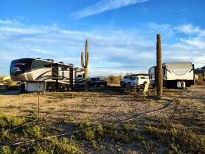 Dump is available for all sites if using a sewage caddy, some rigs can get close enough to hook up and dump. $10 fee per day/dump