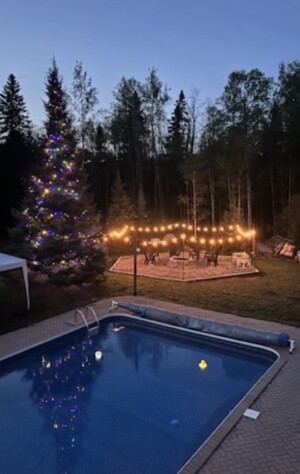 Families love meeting our friendly chickens, three dogs, and cat, which make the stay extra special for kids and animal lovers. During warmer months, guests can enjoy the poolside setting, relax and soak in the peaceful atmosphere. Whether you're looking for a calm forest escape, a fun stop for the family, or a magical evening under the lights, The Big Tree Poolside Hideaway is a memorable place to park, relax, and make beautiful travel memories.