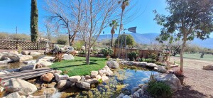Guests are welcomed into a working art studio featuring original artwork and handcrafted gifts available for purchase. For those seeking creativity during their stay, we also offer opportunities to purchase art experiences or create their own artwork by request. Amenities include multiple relaxing patio areas, a propane fire pit perfect for morning coffee or evening cocktails, an on-site koi pond with waterfall and flowing stream, and breathtaking sunrise and sunset mountain views.