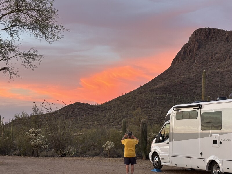 Escape to 15 acres of serene desert on this private ranch retreat offering RV camping without hookups for self-contained rigs up to 40'. Each level back-in site features a shaded picnic table with solar lights, fire ring with provided firewood, and tent pad. Enjoy off-grid adventures: short walking trails, star gazing under brilliant skies, and off-leash dog play. Water spigot, dump station, and optional amenities available nearby. Off-peak RV camping reservations May–Sep.