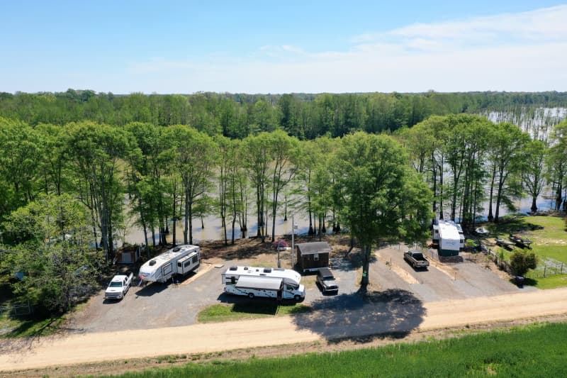 Discover RV Camping at this serene lakefront oasis, boasting 200 feet of private shoreline on a 360-acre cypress-lined oxbow lake. Five spacious, gravel pads feature water, sewer, and 50 AMP hookups, fire pits with cut wood, and a communal grill. Fish for bass or sunbathe next to turtles, then unwind under string and solar lights while gazing at epic sunsets, moonrises, and the Milky Way. Ideal for nature lovers seeking tranquility and wildlife encounters.