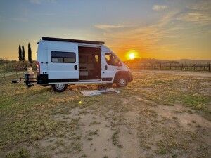 Nestled on an 18-acre estate with 12 acres of working vineyards, this hilltop campground immerses RV camping enthusiasts in the heart of wine country. Enjoy panoramic vineyard views at sunrise--complete with hot air balloons drifting overhead--while wildlife sightings add a touch of wilderness. Unwind by the solar-lit lounge circle, sample self-serve red and white wines on the honor system, and stroll the vine-lined paths. No hookups; ideal for smaller rigs seeking a peaceful, scenic escape.