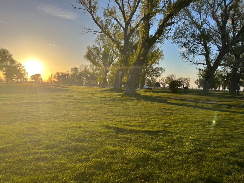 Experience RV camping at a tranquil desert golf course featuring a full-length 9-hole layout framed by majestic cottonwood trees and tree-lined fairways. Enjoy level, well-lit parking in a gated lot, friendly staff, and a snack and coffee shop to refuel. Perfect for a peaceful overnight stop, morning walks, birdwatching and dog-friendly strolls among Joshua trees, with a nearby air museum and fighter jet displays just minutes away.