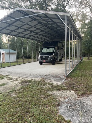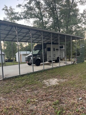 Discover an inviting RV camping haven tucked into a peaceful rural setting. Choose from two covered Full Hookup sites under a roomy carport--available with 50 amp or 30 amp service, water, sewer, WiFi access and trash disposal--plus donation-based boondocking spots off-grid. Level concrete pads, shaded surroundings and dark starry skies set the scene for a serene stopover. Flexible multi-night and long-term stays welcome; pets by arrangement.