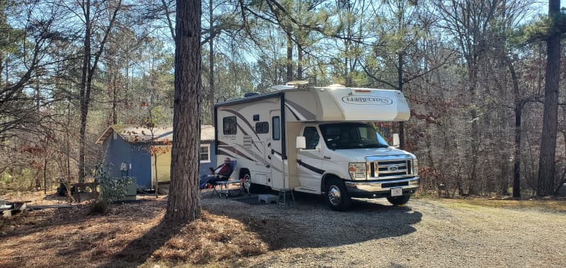 Discover a private woodland haven ideal for RV camping in Class B and C rigs. Nestled just off I-185, this quiet, level pad offers electric hookups ($10/night with extension cord) and free water. Enjoy true seclusion among the trees while still being minutes from local highlights like Callaway Gardens, a scenic Chattahoochee River trail, the Columbus Museum of Art, and Fort Moore. Free dump and trash services nearby ensure a seamless stay.