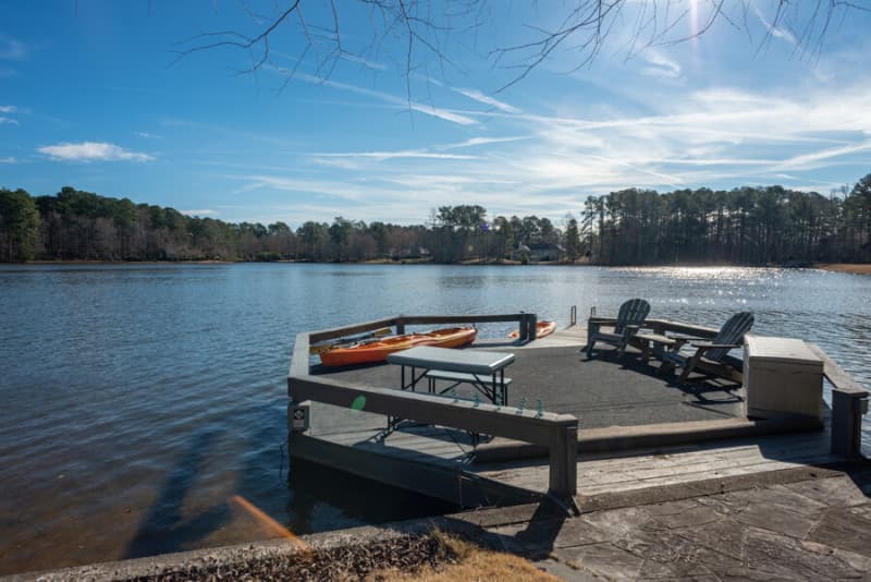 Park your rig at this serene lakeside getaway offering RV camping with a 30 amp hookup in a spacious driveway. Unwind in a fenced yard or stroll to the private dock for swimming, kayaking on provided double kayaks, or casting a line with available fishing poles. Fire up the outdoor kitchen with drink fridge and charcoal grill, then cap the evening around the lakeside bonfire pit. Friendly hosts and pet-friendly space complete this peaceful stopover.
