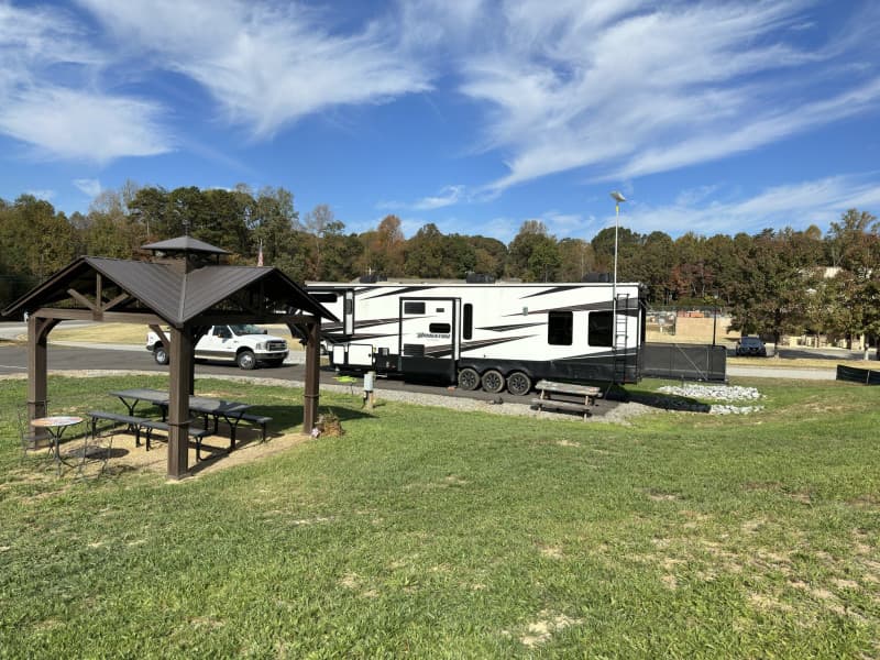 North Georgia Hair Cutters is a stand-alone salon and spa. We have a venue that is located in front and behind the salon called the North Georgia Room. It's a small venue for events, training, parties, showers, and meetings. The North Georgia Room also has an outdoor venue for outdoor events. Next to the outdoor venue we have a large RV parking pad with electricity and water hook up. Sometimes we have food trucks at the venue as well.