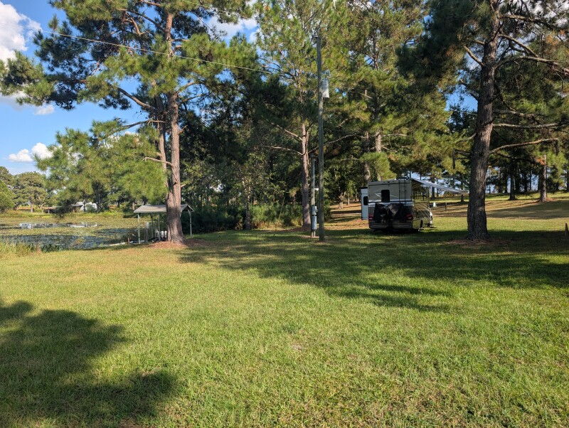 Nestled among 56 acres of stately pecan trees, this charming event venue blends rustic elegance with RV Camping convenience. Park beside an open grassy field or inside a converted pole barn with easy generator-friendly hookups, water and electricity. Explore a 2-acre pond framed by hardwoods, oak and pine, and watch for deer, rabbits and songbirds. Enjoy clear directions, reliable Wi-Fi and gracious hosts who make arrivals seamless. Pet-friendly and perfect for weddings, reunions or a tranquil overnight stay under Southern skies.