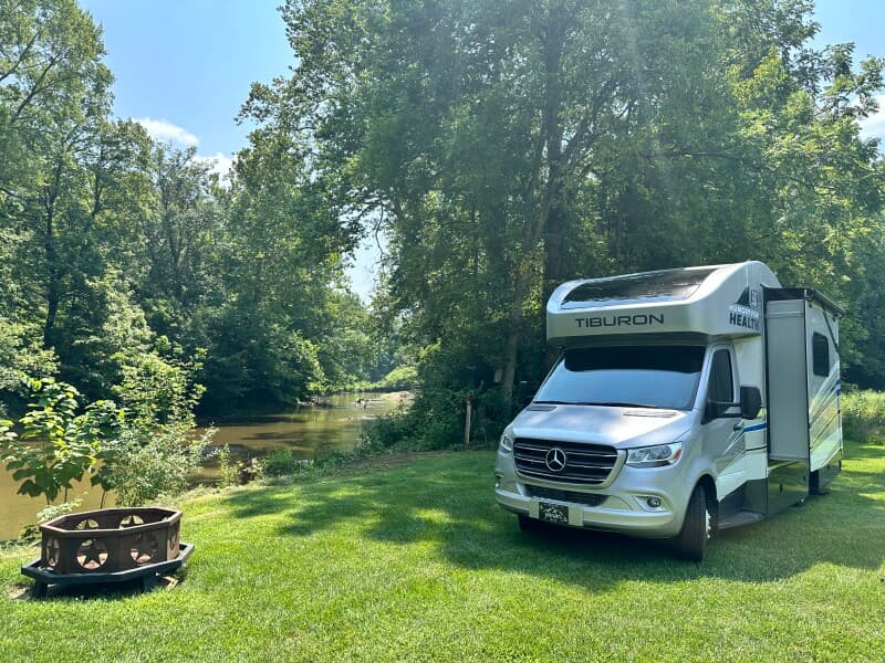 Nestled along a shaded creek, this 12-acre hobby farm offers a serene RV camping retreat amid goats, sheep, chickens and ducks. Pitch your rig near the water’s edge (weather permitting) and enjoy fishing or kayaking on the creek. Evenings around the fire ring highlight the peaceful valley setting, while friendly hosts ensure seamless parking and thoughtful local tips. Ideal for families and nature lovers seeking calm farm life with river access.