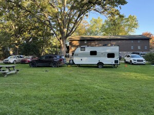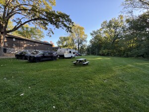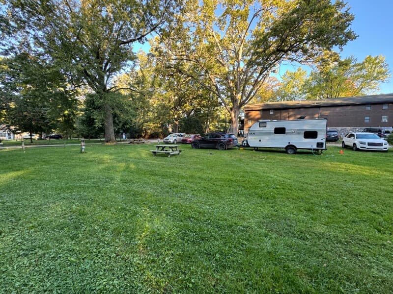 We have six hook ups with electric and water available. We have grass pads with a gravel based.