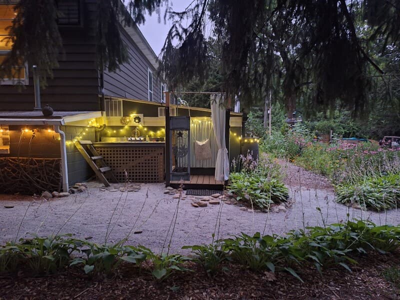 Step into a charming 1914 grange hall transformed into a playful RV camping retreat on 1.5 acres of gardens and woods. Unwind under the stars with an outdoor hot-water shower, lit nighttime paths, and a summer stock-tank pool. Cozy up by the bonfire pit or chiminea, watch for deer, turkeys and songbirds, and request a visit from friendly miniature donkeys. Nearby hiking trails, craft breweries, and Lake Michigan beaches make this historic hideaway the perfect base for adventure.