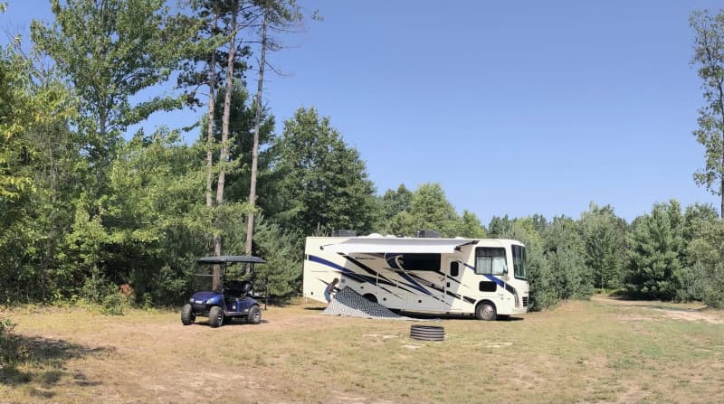 Escape to a secluded woodland retreat ideal for RV Camping enthusiasts seeking privacy and nature immersion. This spacious, level site offers 30/50 amp electric hookup and water in warm months, plus a picnic table with umbrella, fire ring and complimentary firewood. Nestled against a national forest and just minutes from Lake Michigan, local lakes, fishing, hunting, trails, dining and shopping, it’s the perfect blend of rustic serenity and nearby conveniences for a memorable stay.