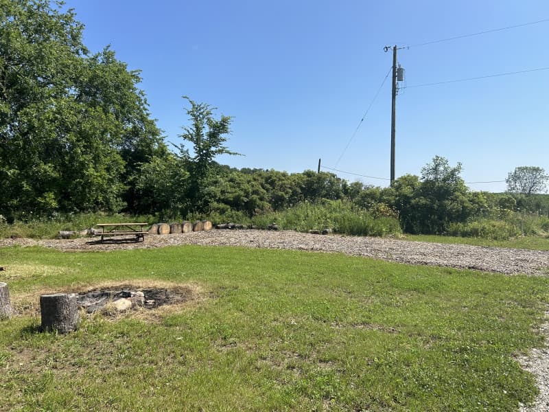 Nestled on a tranquil 10-acre hobby farm, this RV Camping spot invites you to unwind among chickens, a lush garden, and scenic agricultural vistas. Enjoy a half-mile walking path around the property, picnic table, fire pit with complimentary wood for campfire meals and s’mores, and fresh eggs from the coop. Nearby attractions include a seasonal farmers’ market, lakeside park, local eateries, and easy access to fuel and shopping.