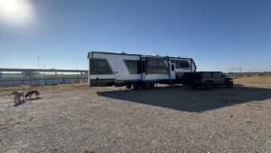 Experience secure RV camping at this fully gated gravel lot on an RV dealership property. Open exclusively for named-storm evacuees in the days before and after hurricanes, the level, expansive parking accommodates big rigs with ease. Enjoy peace of mind with a locked gate at night, prompt host responses, and easy access to interstates and nearby truck stops. No hookups, but plenty of room to stretch your legs and walk your dog in this quiet, safe haven.