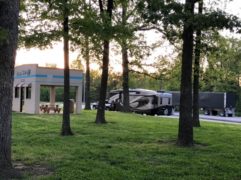 Kickstart your RV camping adventure at this well-maintained welcome center nestled along America’s iconic highway. This FCFS rest area offers traveler information, Route 66 exhibits, brochures and maps, plus snack machines and clean restrooms. Enjoy a shaded picnic area, playground and grassy pet zone. With ample parking--even room for slide-outs in the back lot--you can stay overnight free of charge (no fires or tent camping) in a safe, family-friendly setting.