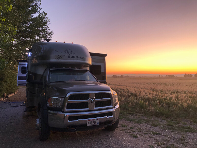 Nestled on a fourth-generation family farm amid sweeping wheat and canola fields, this RV Camping spot features two creekside sites with water, power, picnic tables, and fire pits (wood available). Enjoy catch-and-release brown trout fishing, spot herons and sandhill cranes, or stroll a dirt road with mountain vistas. Warm hosts share farm history as you relax under open skies at this unforgettable farm retreat.