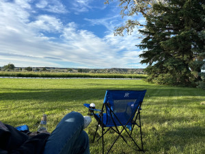 Experience RV Camping at a working angus beef ranch in a scenic river valley. Park on level gravel under mature cottonwoods, stroll past hayfields, and visit the metal art studio. Enjoy fresh ribeyes, ground beef, salami, sourdough and whipped honey--or relax near corrals for horses. Friendly hosts supply 30A power and welcome hunters by request. Note: farm equipment may start early; please call ahead with your ETA and leash pets.