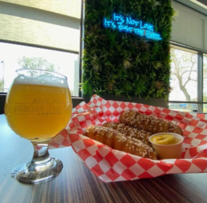 Locals favorite craft brewery with food and food trucks throughout the week!! Semi-sloped parking in the back bay. Contact a day before for best experience!!