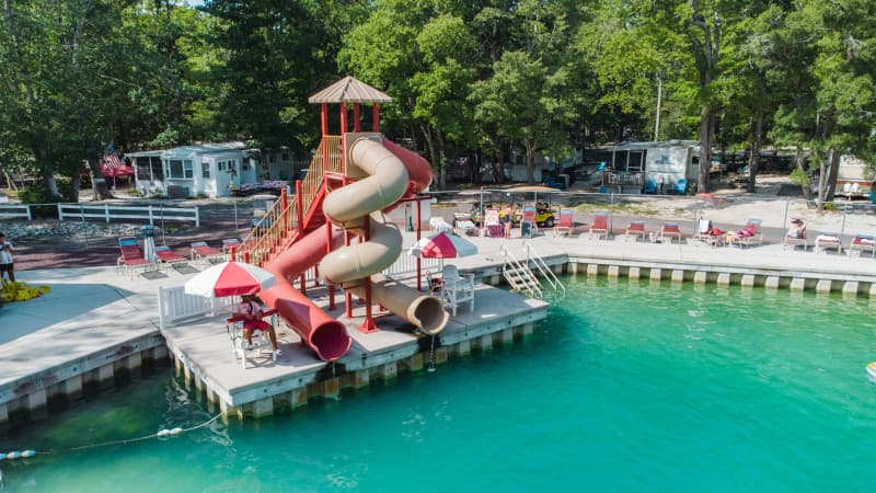 Enjoy wonderful resort amenities at Seashore, including a private sandy beach, a swimming lake with a waterslide, and an outdoor pool. Hit the tennis courts, join us for movie nights, pick up supplies in our store, and enjoy delicious food at George's Place Snack Bar.
