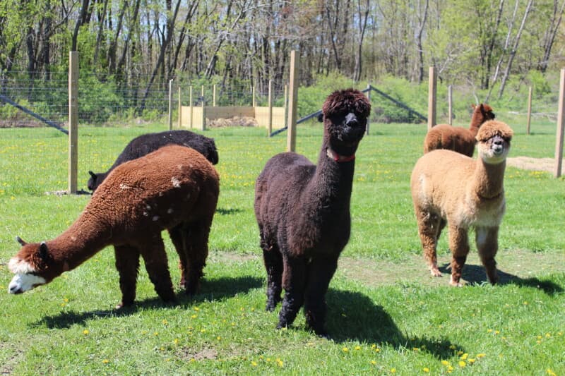 Experience RV camping on a 120-acre working alpaca farm offering both open grassy sites near friendly alpacas and secluded wooded spots ideal for RVs up to 25 feet. Guests can explore the pasture, hand-feed alpacas, and enjoy fresh seasonal produce. The on-site gift shop features handwoven alpaca yarn products, socks, gloves and mittens, while farm-fresh eggs and frozen meat chickens bring authentic farm flavors to your stay.