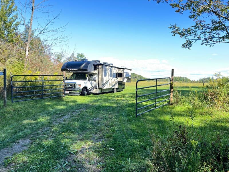 Nestled near a scenic lake and gorge, this family-owned farm offers RV Camping in a serene, private pasture. Greet morning with grazing cows and pick up farm-fresh chicken, duck & guinea eggs or request pasture-raised beef, chicken & pork at the on-site stand. Firewood, picnic table & fire pit set the scene for starry nights. Explore nearby Rails-to-Trails miles for cycling, hiking or venture to local waterways for kayaking and paddleboarding.
