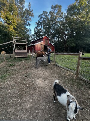 Tranquil Oaks Farm is a small family owned home in Monroe, NC. We have an array of farm animals, creek for fishing with applicable license, small zipline and swing. Relax under the stars and feed Mia the highland cow, play with some bunnies, and brush Millie Mae the Julianna pig along with donkeys, goats, chickens and our large black hog Penelope who loves her belly rubbed!