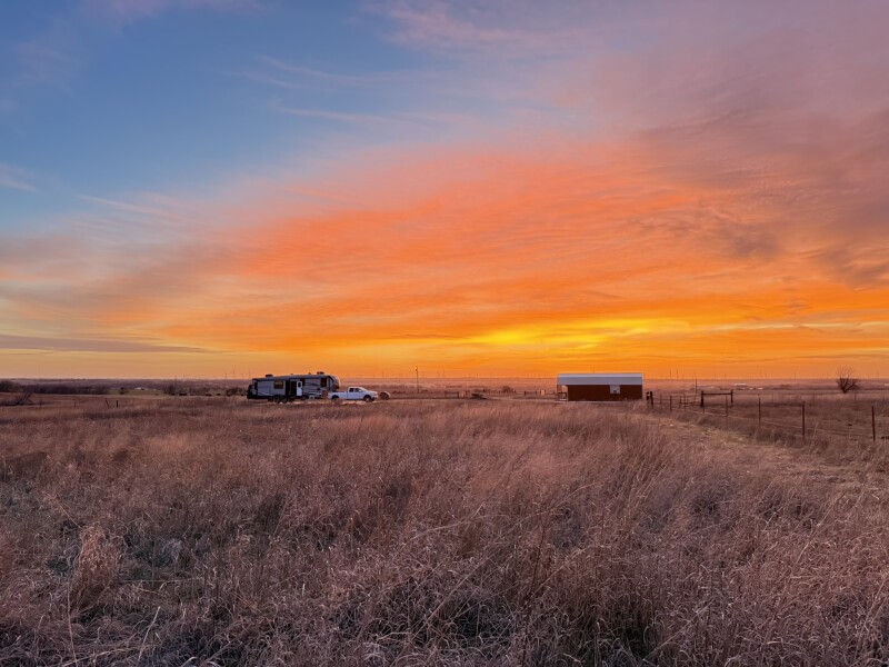 Trade traffic noise for wide-open skies with RV Camping on a private concrete pad overlooking open pasture and grazing cattle. Enjoy 30‑amp electric hookups, easy pull-in space for big rigs, and optional access to a nearby tiny house with loft bedroom. Watch Longhorns wander up at sunset, and ask about the small grazing trap if traveling with livestock. Tip: check in about road conditions after rain, as it can get muddy.