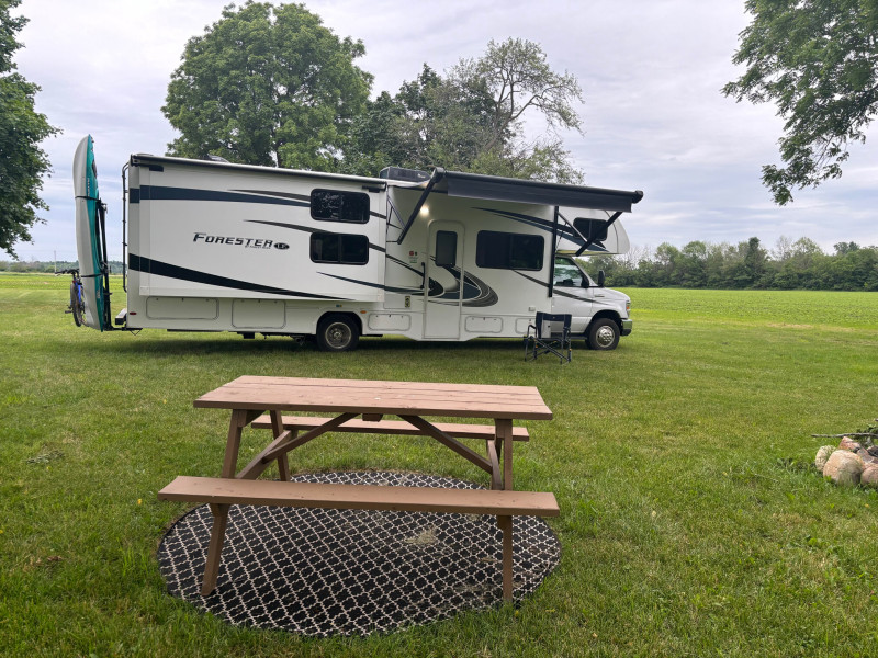 Discover peaceful RV camping on a grassy farmyard that's easy to navigate for rigs up to 35'. Enjoy convenient hookups--15A (20A with your extension) and water--plus quiet, level ground sheltered by trees. Spend your days exploring a nearby provincial park with beach and boat launch, or sample local pub fare and grocery offerings just minutes away. Friendly hosts, reliable WiFi, and serene boondocking make this the perfect stopover for your next adventure.