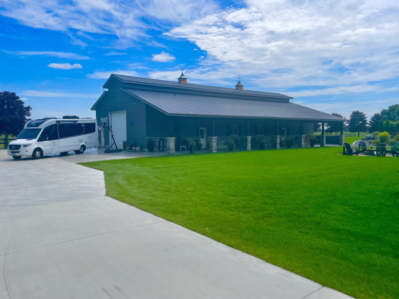 We have 4 acres on a private road within walking distance to the main beach in Grand Bend Ontario, on the shores of Lake Huron. Plenty of concrete parking for any size RV, 30A and water hookup available.